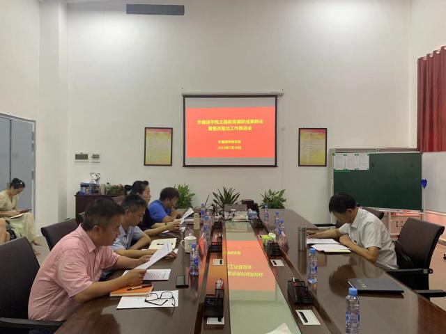 (本网讯:叶绿素)7月19日下午,外国语学院在五楼党员活动室召开学习贯彻习近平新时代中国特色社会主义思想主题教育调研成果转化暨整改整治工作推进会。副校长黄志坚到会指导,外国语学院党委书记程立新主持会议。