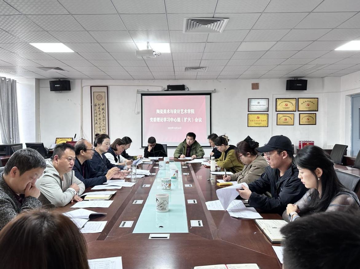 (本网讯:占梦婷)10月25日上午,陶瓷美术与设计艺术学院党委理论学习中心组(扩大)会在党员活动室召开,学习贯彻习近平总书记考察江西重要讲话精神,校党委委员、宣传部部长、艺术学院党委书记赵雪政主持会议。学院全体领导班子成员,各科室、各系部负责人,各党支部书记参加会议。